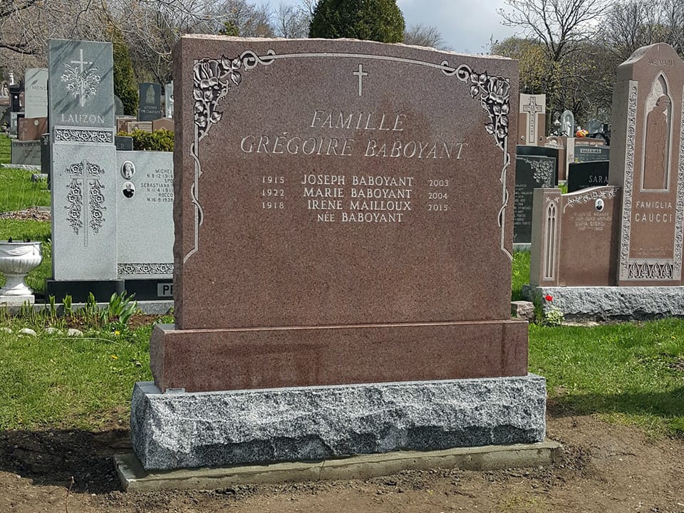 Nos monuments funéraires sont assortis d’une garantie perpétuelle complète contre tout défaut de matière première ou de fabrication. Partout dans le Grand-Montréal, de la Rive-Nord à la Rive-Sud, Granite Nadon est un nom de confiance.